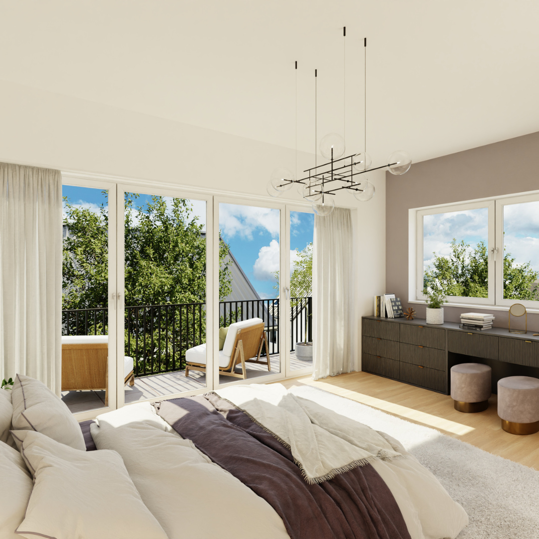Jedes Haus verfügt über Balkone und Terrassen, die flexible Gestaltungsmöglichkeiten für jede Lebensphase bieten.